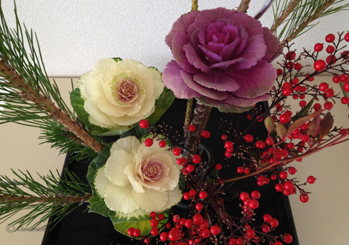 画像にもありますが、葉ボタンもよく使います。この2色、紅白で縁起がいいとされています。江戸時代から、入手困難な牡丹の代わりに、正月に飾られていたという超ロングセラーです。