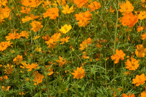 黄花コスモスも、コスモスの仲間で、淡いレモンイエローから、オレンジ色まで、同じ頃フラワーショップにも出回ります。