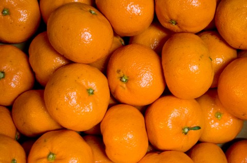 11月に入って、10月の運動会シーズンには黄緑だった蜜柑が、オレンジ色に色づいてきました。この写真のような、蜜柑の皮の色を「蜜柑色」といいます。このような蜜柑が普及したのは、明治時代なので、「蜜柑色」は、比較的新しい色名です。