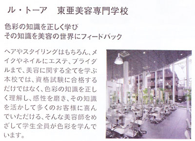 2003年度より毎年色彩学を担当させていただいている「ル・トーア東亜美容専門学校」様が、色彩検定協会の発行する「A・F・Tジャーナル vol.61/2016 Summer」に、2015年色彩検定優秀団体として掲載されました。