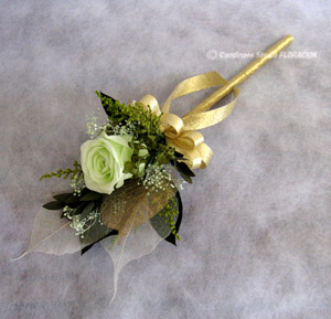 そして、好きな色は「深緑」と答えた新婦のお父様の胸には、小さな花束が贈られました。こちらの場合、新郎のお父様は既に他界されていましたが、ご健在でしたら、ご両家のお父様の胸にも、お色違いの花束を贈るといいですね。お一人ずつのお好みを考えて手作りされた花嫁さんの気配りは、司会者の方からご紹介されて、大好評でしたよ♪