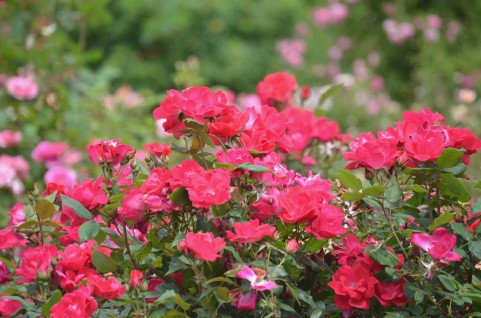 花色カラーを1色選んで、その色に白か黒か灰色を足した色を合わせます。っていうと難しそうに聞こえますが、赤紫とピンク、青と水色などの濃淡配色です。花色カラー(純色)に白を足した色を「明清色」なんていいますが、名前はともかく、とてもわかりやすいので、まずマスターされるといいですよ。お家に水彩絵の具などあれば、色んな色に白を混ぜてみて下さい。きれいなパステルカラーができますね。白だけではなくて、黒や灰色を混ぜると、どんな色になるか覚えておけば、とても簡単に色あわせができすようになります。ちなみに、これを同系色といいます。