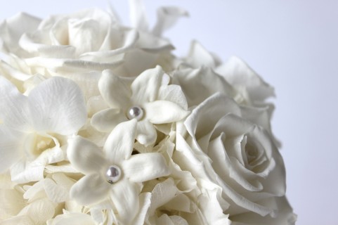 フラワーデザインに関連のある連想としては、なんといってもウェディングドレス!白いブーケに白いチャペル、花嫁の純潔をあらわす色です。神聖な聖母マリアの色でもあります。白は、汚してはいけない気がするので、清潔な感じも与えます。