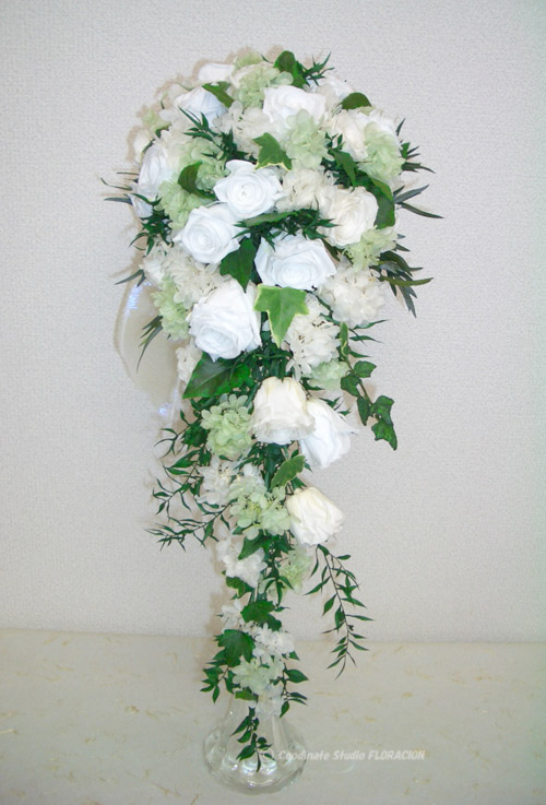 【花色】白バラのキャスケードブーケ