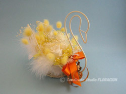 この2羽の白鳥は、違う受講生が作った作品です。左は、リボンに暖色のオレンジ色とゴールドを選んで、女の子を表しています。右は、シルバーと白いオーガンジーのリボンを結んで、男の子にしました。カップルみたいで可愛いですね♪