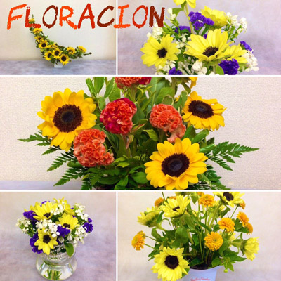 初投稿は、そろそろ夏の思い出になりかけているヒマワリ色のアレンジメントを集めてみました♪