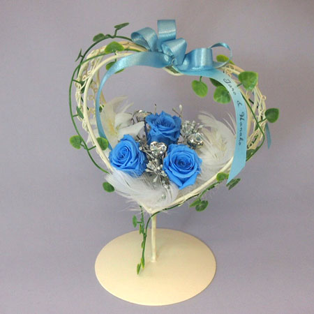 タグ:ギフト(贈り物), サマーウエディング, ハート型, フラワーアレンジメント, プリザーブドフラワー, 夏, 結婚祝い, 青